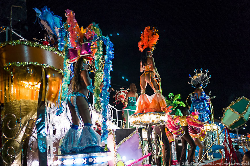 Colourful public parades are organised over several days. Groups (comparsas) representing various neighbourhoods or associations compete joyfully to be officially awarded. Their costumes and accessories are stunningly elaborated. My personal award is attributed to the following group for their awesome tenue. I trust that you will back my choice.