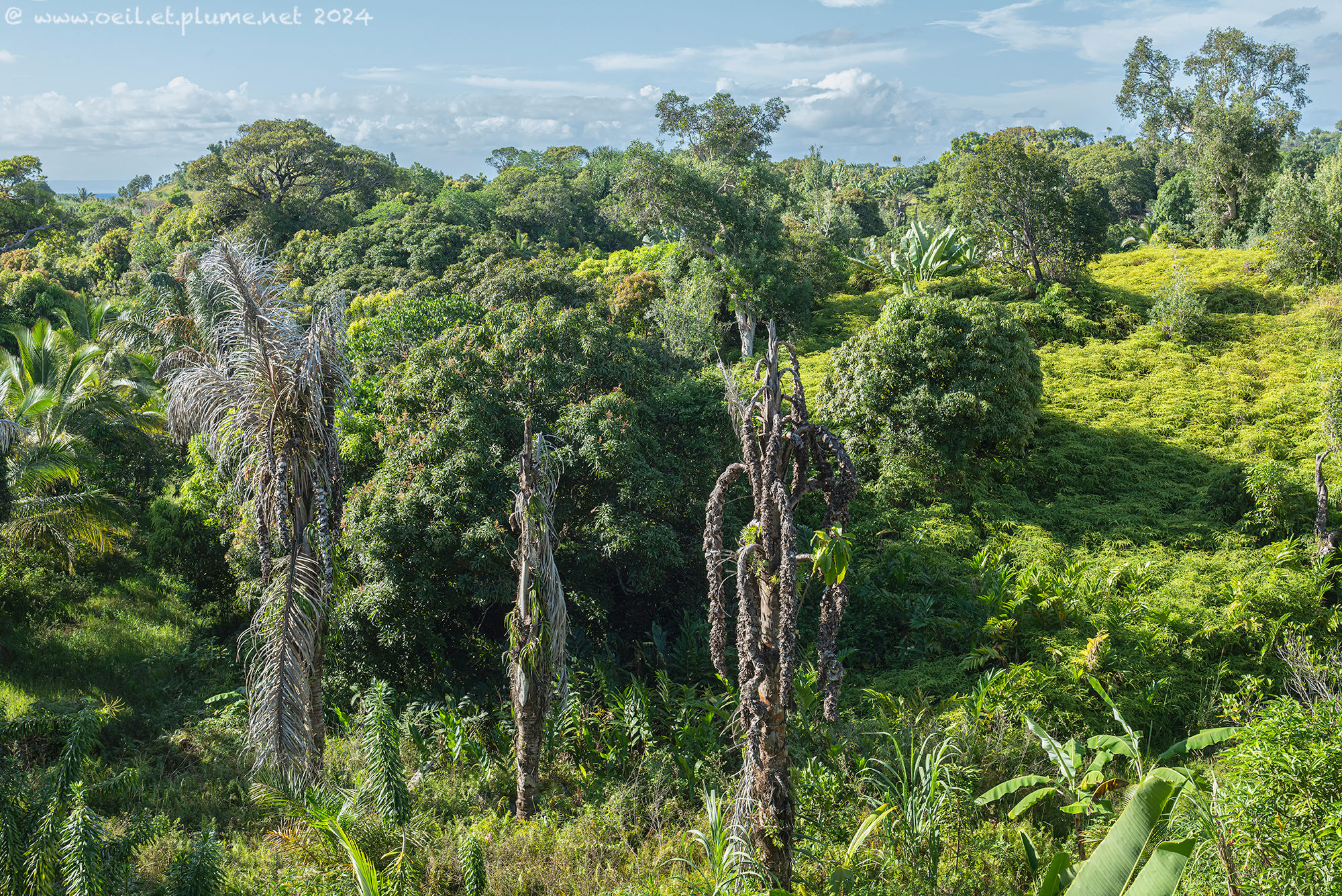 Sainte-Marie island is very green, and was probably even more so in the past. In the landscape, the green colour diffracts into various characters: