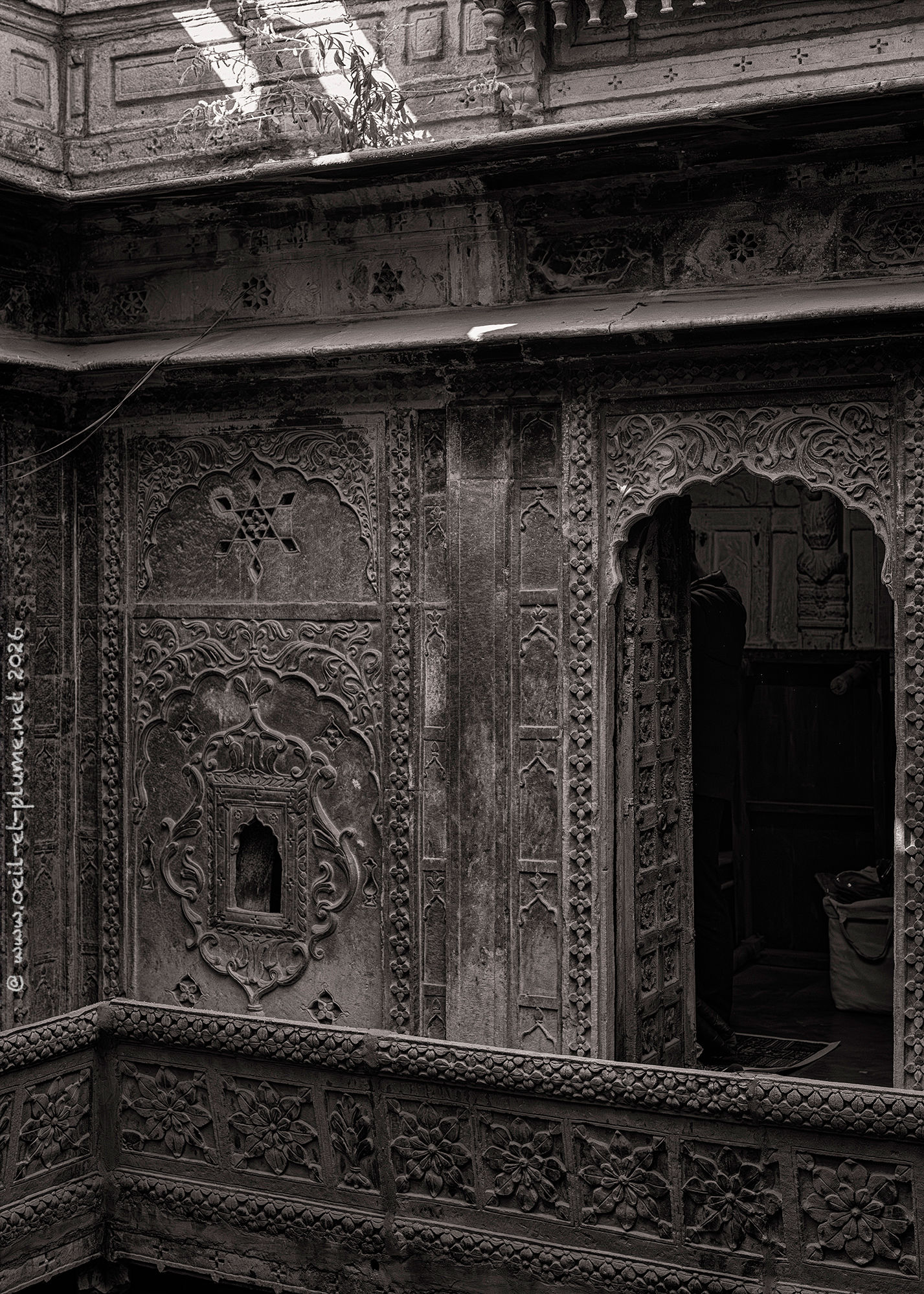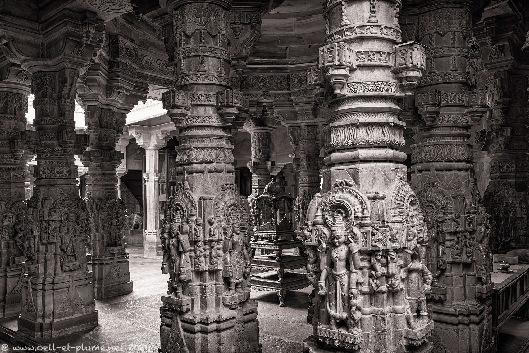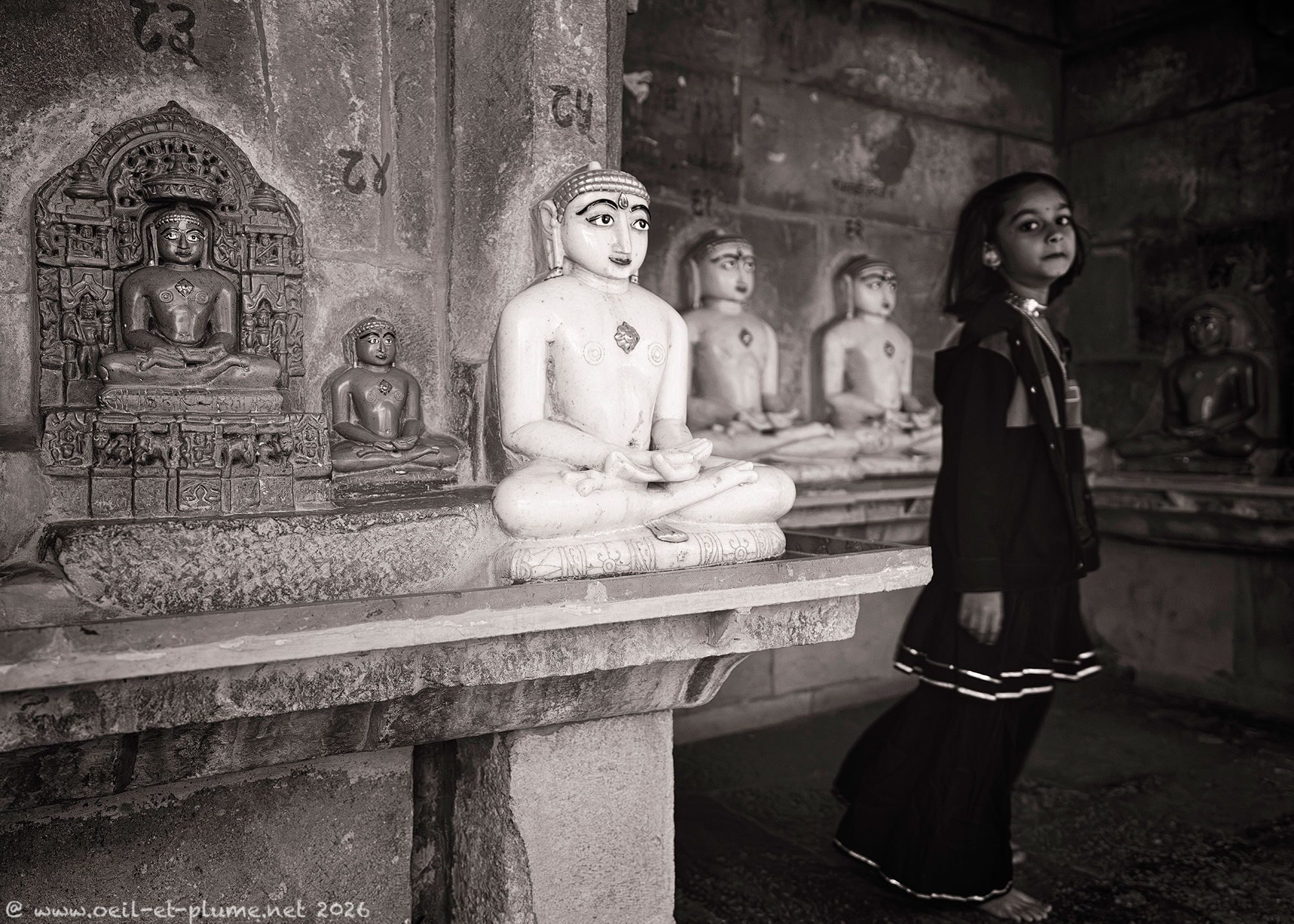 Over several days, I returned to the Jain temples of Jaisalmer at different hours, observing how shifting light transforms the carved sandstone and marble surfaces. I spent long, quiet, and contemplative moments within their walls — absorbing the serenity of the spaces and connecting with the profound spiritual energy they radiate. My work aims to capture the subtle interplay of light, silence, texture, and devotion that define these sacred spaces shaped by centuries of Jainism.