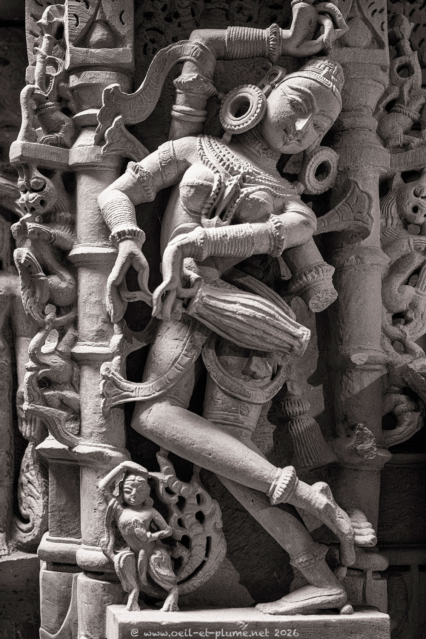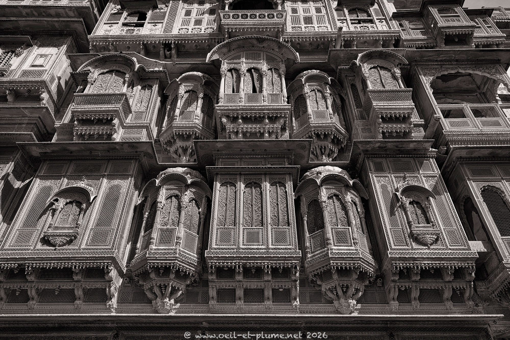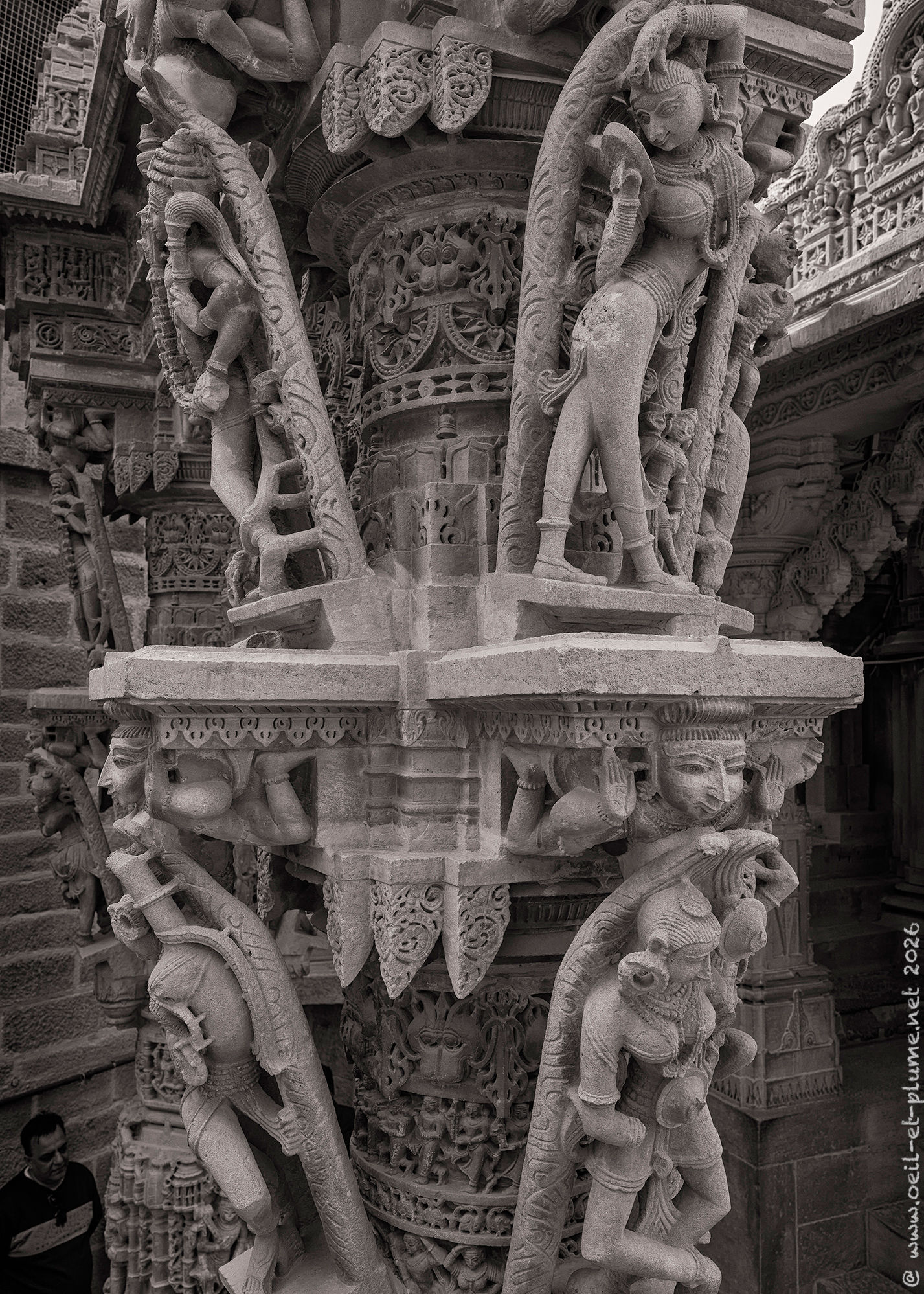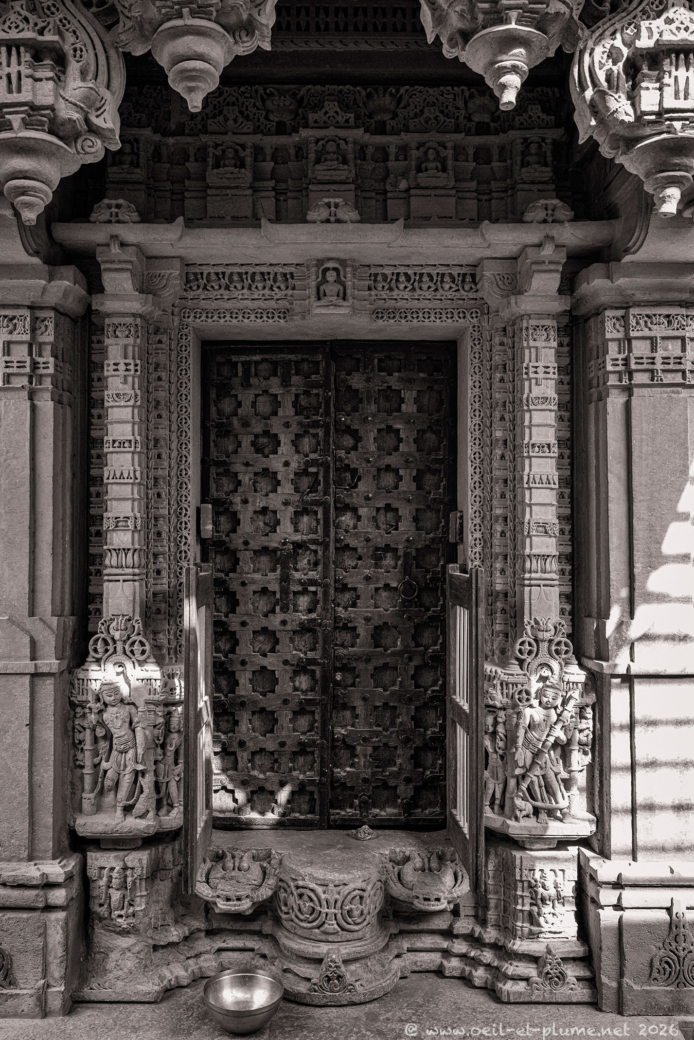 Over several days, I returned to the Jain temples of Jaisalmer at different hours, observing how shifting light transforms the carved sandstone and marble surfaces. I spent long, quiet, and contemplative moments within their walls — absorbing the serenity of the spaces and connecting with the profound spiritual energy they radiate. My work aims to capture the subtle interplay of light, silence, texture, and devotion that define these sacred spaces shaped by centuries of Jainism.