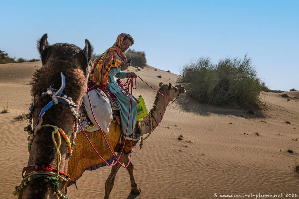 Ahead of the cultural festival, I longed to be introduced to the Thar Desert, stretching north of Jaisalmer and across the international border into Pakistan. Riding my gentle dromedary, Johnny, and guided by Mobai, I spent several days wandering through its vast, wind-shaped expanses.