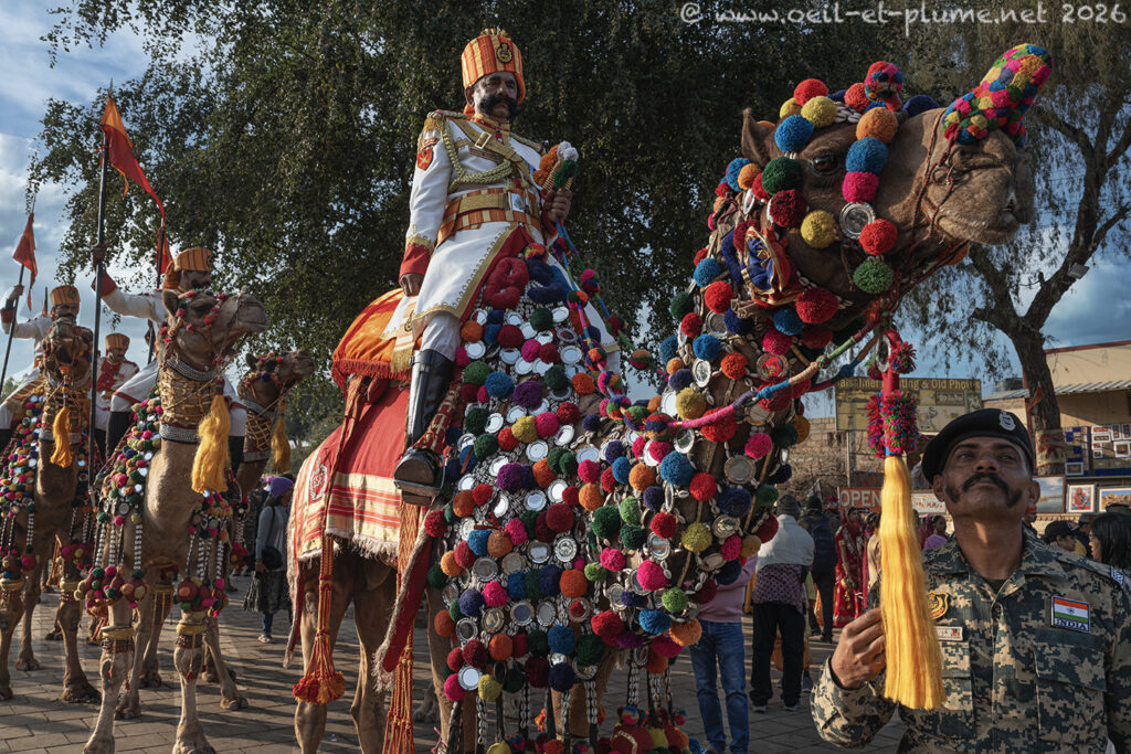 The Jaisalmer’s Desert Festival showcases Rajasthan’s rich cultural heritage through camel parade, folk music, traditional dances, turban-tying, and “longest moustache” competition. Rajasthani dromedaries remain central throughout the event, as they are not merely as an animal of transport, but as a cultural emblem of desert resilience and artistry. Their festive attire – draped in embroidered textiles, mirror work, tassels, and ankle bells – does not stay unnoticed.